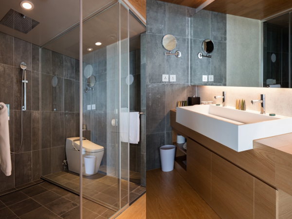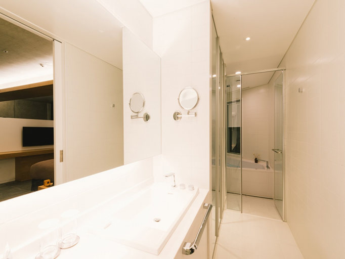 헤어 드라이기, 샤워부스, 비데, 순면 목욕가운 및 슬리퍼, 전자저울, 와인잔 2개, 미니 바(유료), 무료생수 1일 2병 제공, 아이스버킷 제공
